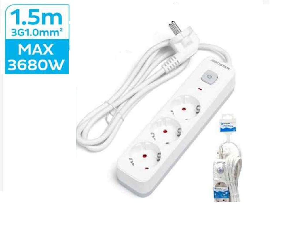 1.5M Hármas Elosztó Kapcsolóval 3G1.0mm² Fehér 16A 3680W