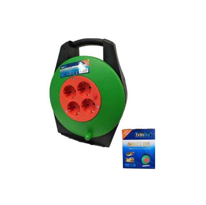 A kábeldob 15 méter hosszú, minőségi hálózati kábellel rendelkezik. A vezeték típusa 3G1.5 mm2, amely biztosítja a stabil és biztonságos áramvezetést. A központi egység négy darab földelt csatlakozóaljzatot tartalmaz. A termék IP20-as védettségi besorolású, és a tartós zöld műanyag házat ergonomikus fogantyúval és tekerőkarral szerelték fel.