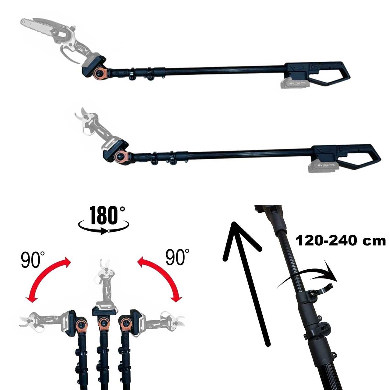 • Biztonság a magasban: A 110-200 cm-es teleszkópos kar lehetővé teszi, hogy elérd a legmagasabb ágakat is, anélkül, hogy létrára lenne szükséged.