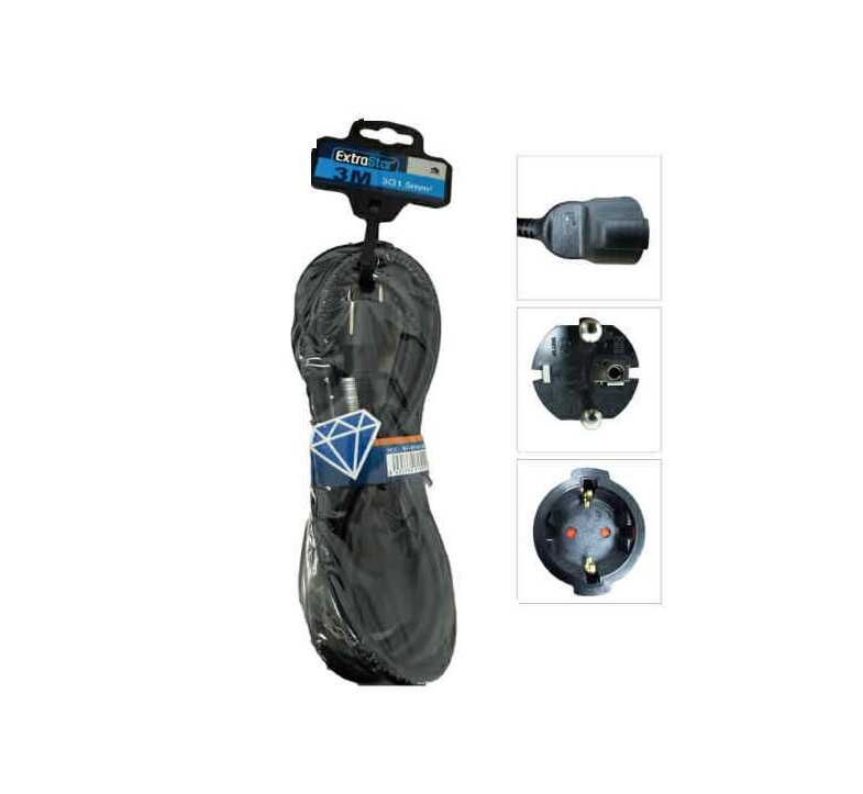 3 méteres Fekete Hálózati Hosszabbító Kábel (Gyermekvédelemmel)