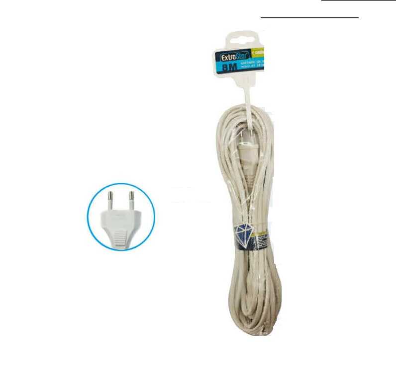 1 darab 8 méter hosszú, fehér hálózati hosszabbító kábel lapos Euro-csatlakozóval.