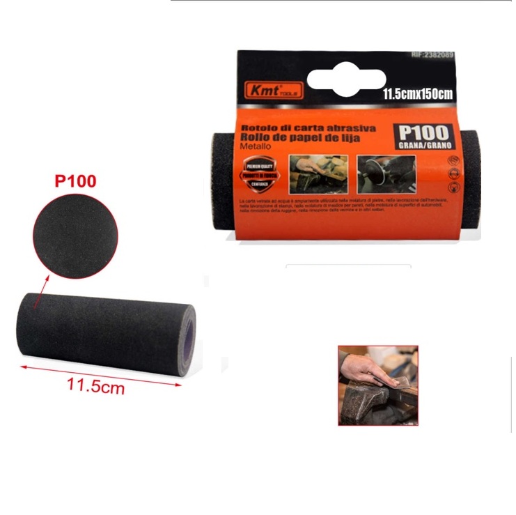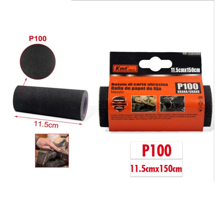 Csiszolópapír tekercs 11,5 cm x 150 cm, P100 szemcsézet, fémhez és fához – Kmt Tools