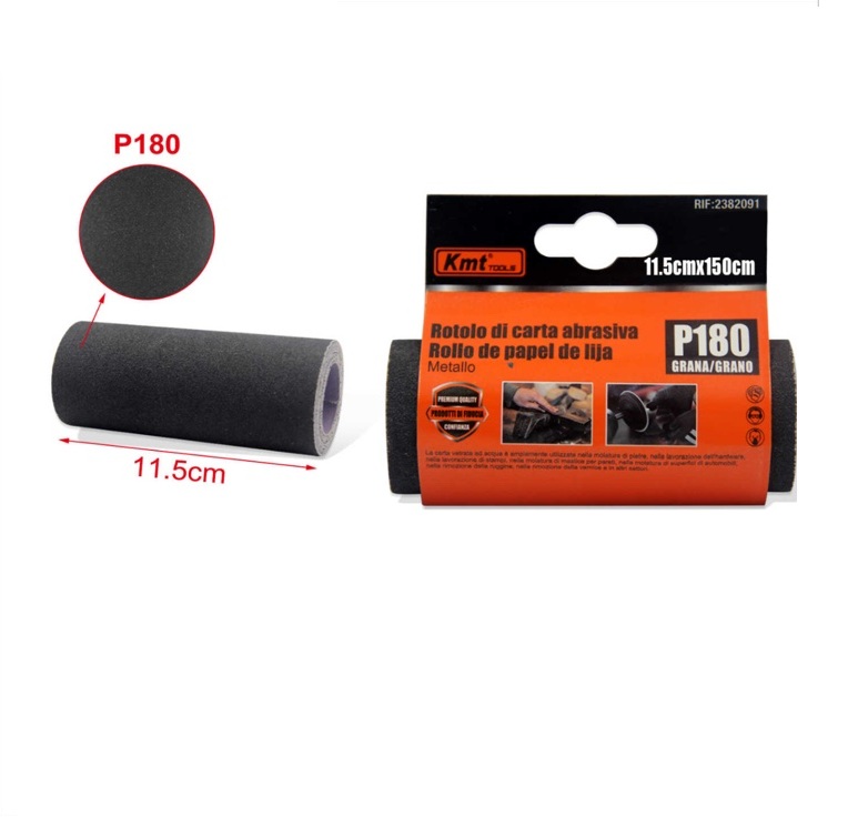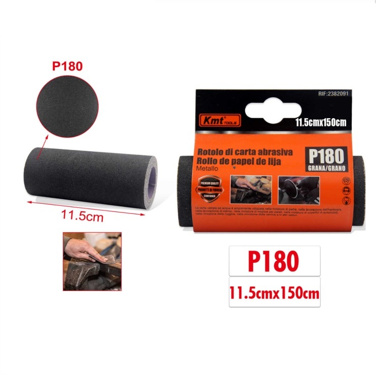 Csiszolópapír tekercs 11,5 cm x 150 cm, P180 szemcsézet, száraz és nedves csiszoláshoz – Kmt Tools