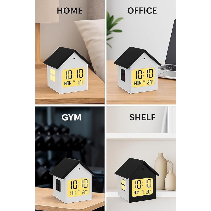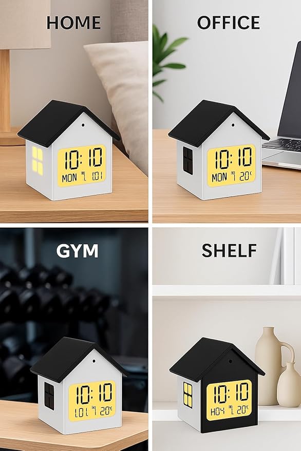 A Domum egy multifunkciós digitális állomás, amely a precíz időmérés mellett a beltéri komfortérzet alapvető paramétereit is figyeli. A házikó formájú kialakítás a biztonságot és az otthon melegét szimbolizálja, míg a letisztult fehér váz és a kontrasztos tető modern esztétikát kölcsönöz a készüléknek.