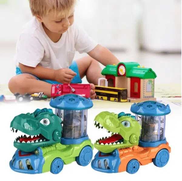Szülőként tudod, hogy a gyermeked imádja a járműveket, a dinoszauruszokat és mindent, ami mozog, hangot ad és világít? Ez az interaktív dinoszaurusz szállító játékautó tökéletes választás, ami egyesíti a dinoszauruszok birodalmát az izgalmas járművek világával!