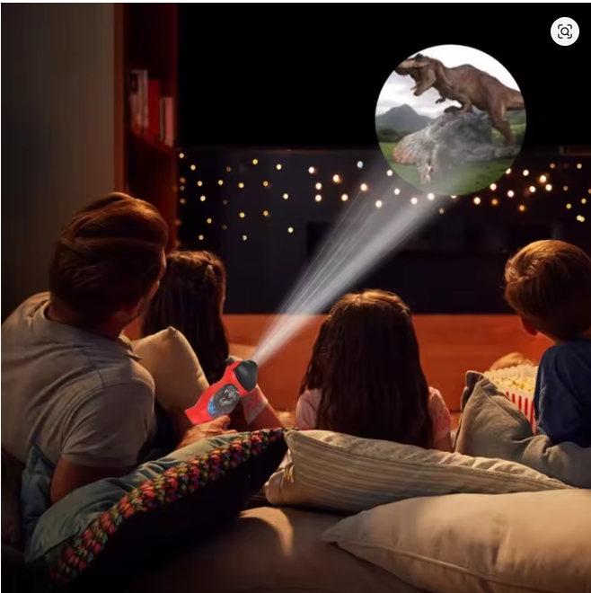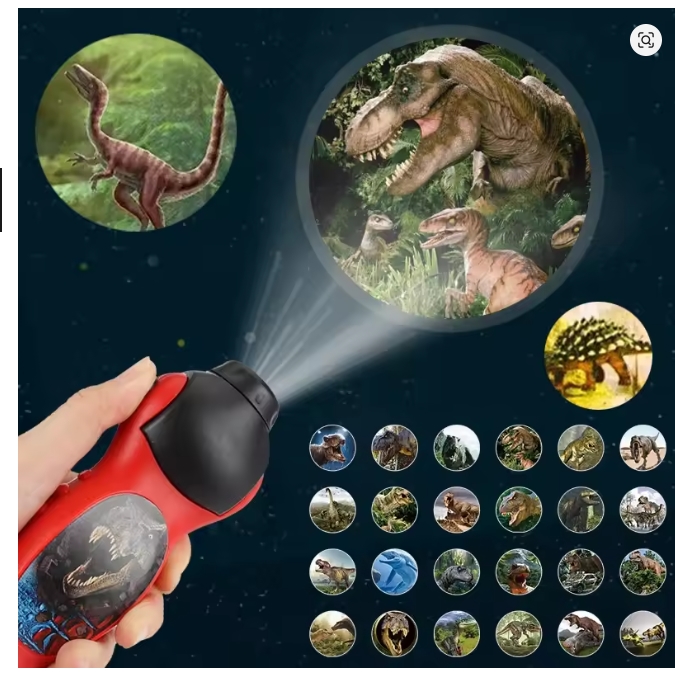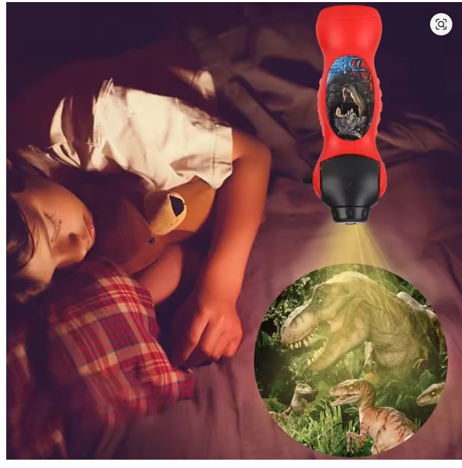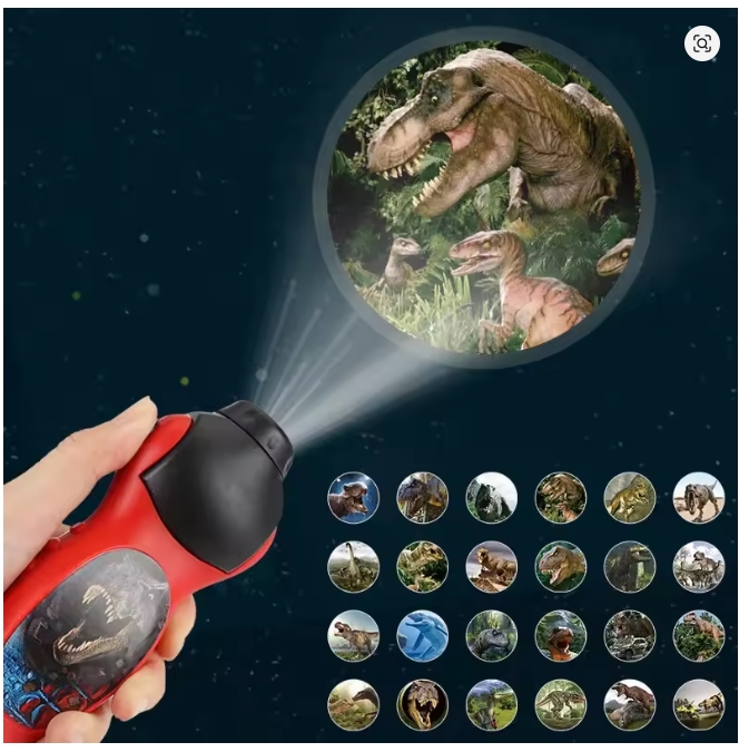 Unalmas az esti mese? Fél a gyermeked a sötétben? Van egy varázslatos megoldásunk! Ezzel a T-Rex motívummal díszített vetítő zseblámpával a gyerekszoba falát egy szempillantás alatt őslényparkká változtathatod. Képzeld el a gyermeked ámulatát, ahogy lefekvés előtt T-Rexek és Triceratopszok jelennek meg a plafonon! Ez a lámpa nemcsak egy játék; ez egy interaktív mesekönyv, ami fejleszti a képzeletet, és egyedi, közös történetek kitalálására ösztönöz, miközben megnyugtató hangulatot teremt az elalváshoz.