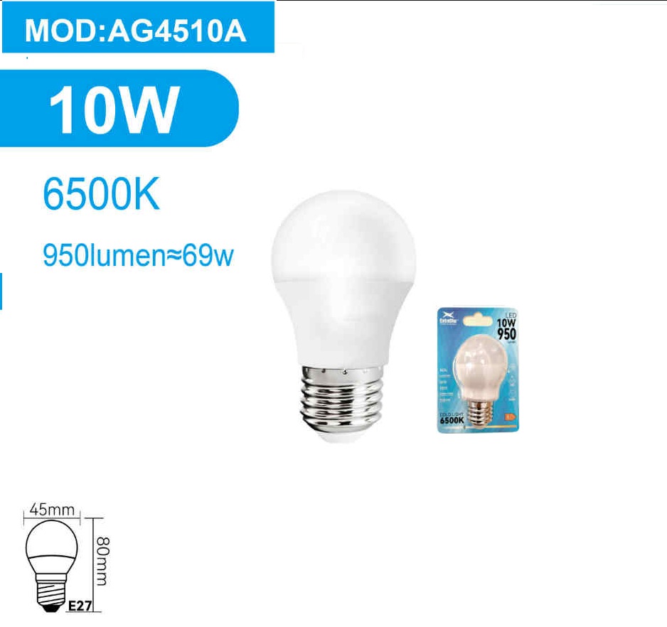 | 10W | 950 lm | ~69W | G45 kisgömb |