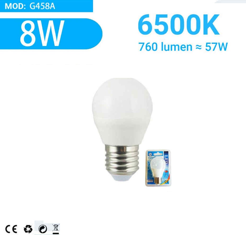 | 8W | 760 lm | ~57W | G45 kisgömb |
