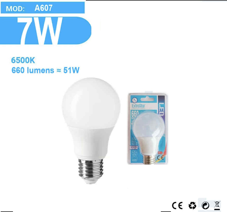 | 6W | 570 lm | ~46W | A60 gömb |