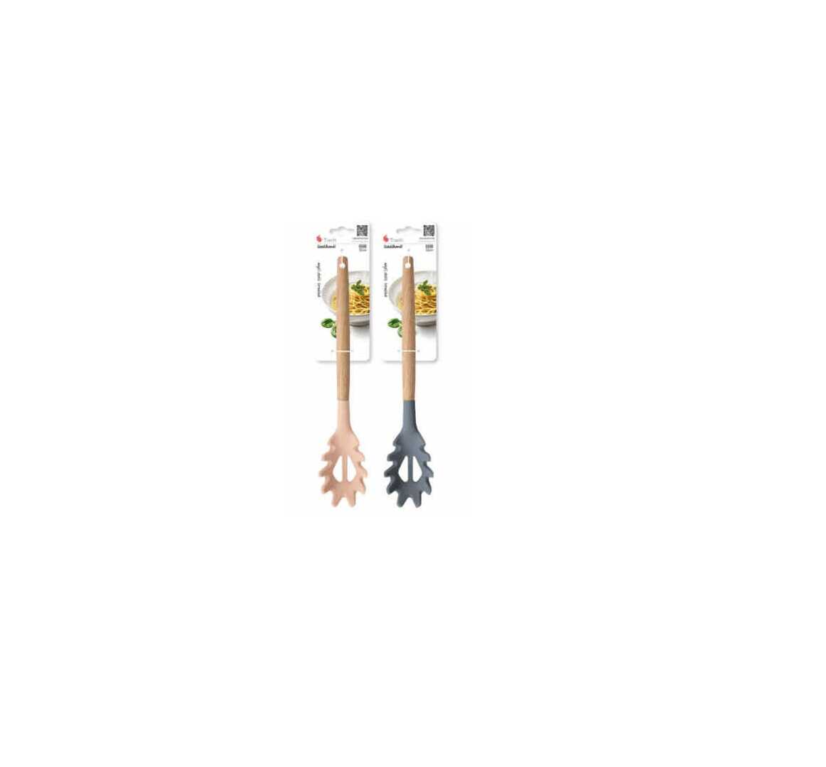 Tegye professzionálissá a tésztafélék tálalását ezzel a speciálisan kialakított, szilikon fejű kiszedő kanállal. A fogazott szélű, belső nyílással ellátott fej tökéletes megoldást nyújt a spagetti, tagliatelle vagy egyéb hosszú tészták biztonságos kiemeléséhez és adagolásához, miközben a felesleges főzővíz azonnal lecsöpög. A természetes fa nyél és a modern szilikon kombinációja stílusos és tartós kiegészítője minden konyhának.
