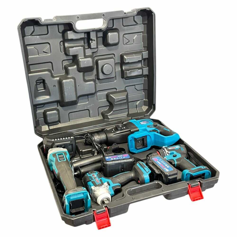 - 4 az 1-ben kombinált kapacitás: Egyetlen szett, ami magában foglalja a legfontosabb kéziszerszámokat: ütvecsavarozót, véső-fúrókalapácsot, ütvefúró-csavarbehajtót és sarokcsiszolót. Előny: Spórolj helyet és pénzt, hiszen nem kell külön-külön megvásárolnod a gépeket, és mindig kéznél van a megfelelő eszköz.