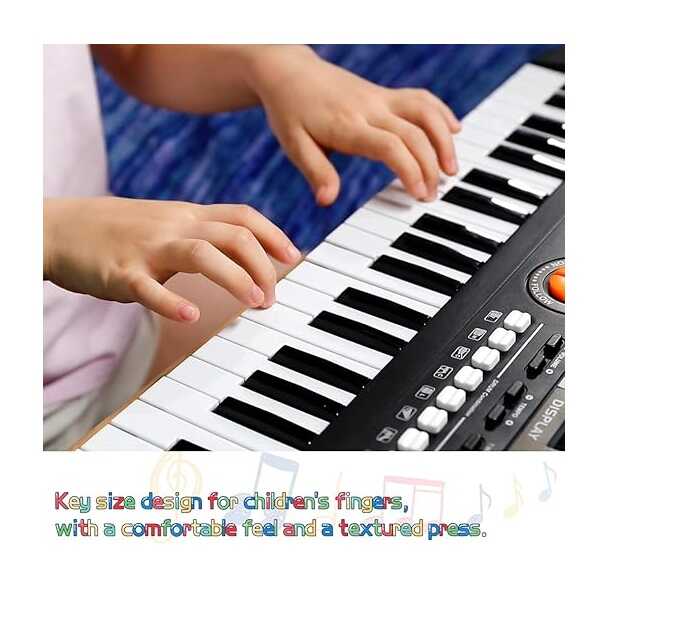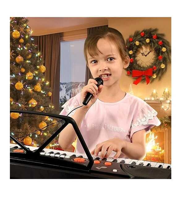 Mikrofon és Kottatartó: A csomagban található mikrofonnal a kicsik azonnal énekelhetnek is a saját zenei kíséretükre. A praktikus kottatartó segít az első dalok tanulásában.