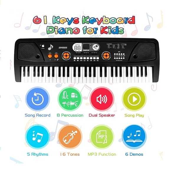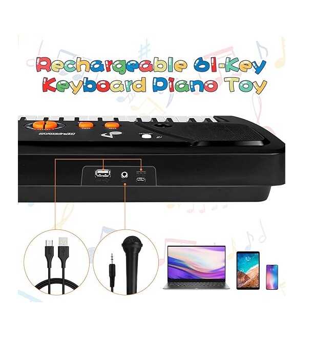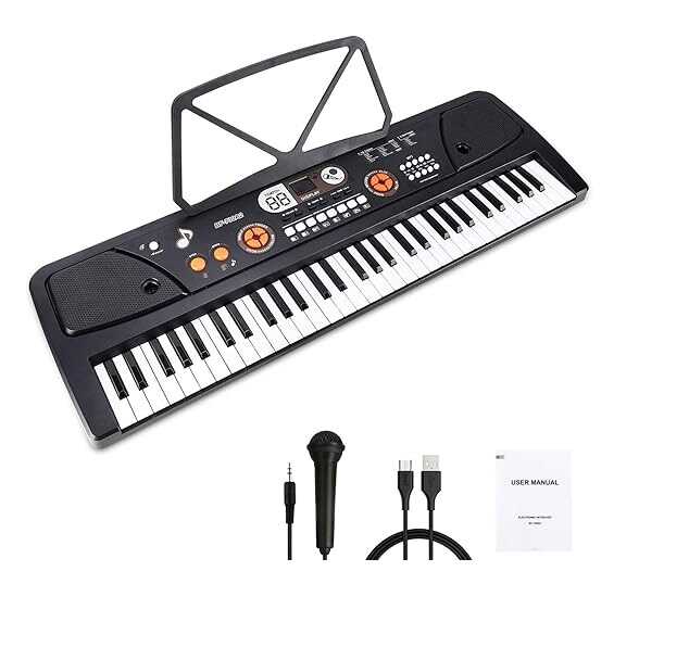 Hordozható gyermekzongora kottatartóval és mikrofonnal , 61 billentyű ,LCD kijelzővel és USB bemenet