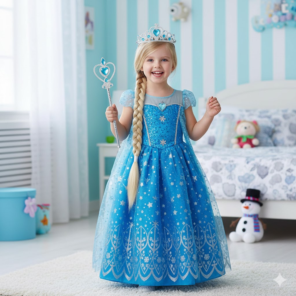 Váltsd valóra kislányod álmát ezzel a gyönyörű, jégkék kövekkel díszített kiegészítő csomaggal! Ez a szett tökéletes választás farsangra, szülinapi zsúrra vagy a mindennapi hercegnős játékokhoz, hogy minden pillanat mesébe illő legyen.