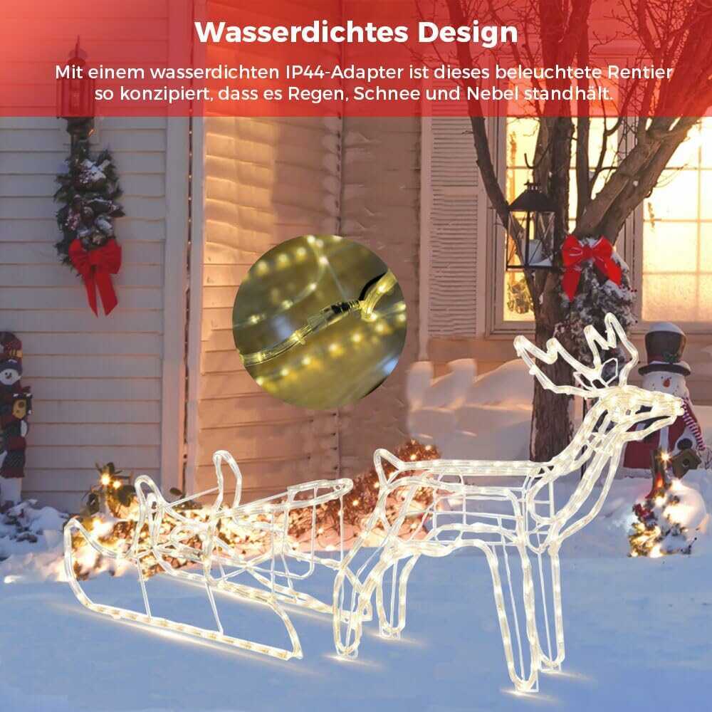 Teljes karácsonyi jelenet: A rénszarvas és a hozzá kapcsolt szán egy komplett, látványos kompozíciót alkot, amely garantáltan a dekorációd középpontjába kerül.