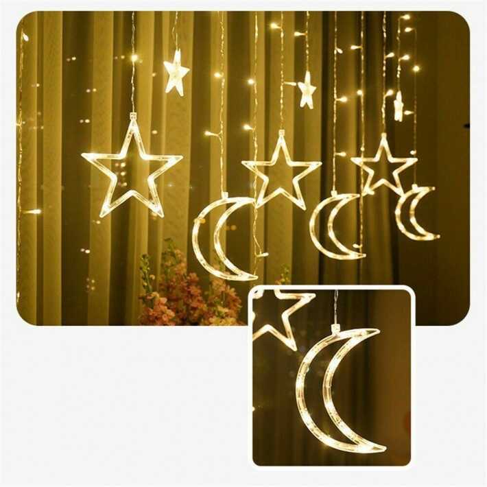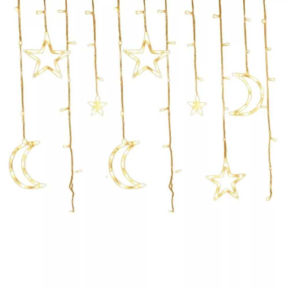1x Karácsonyi Fényfüggöny (Holdakkal és Csillagokkal, 2.5 méter, 120 LED)