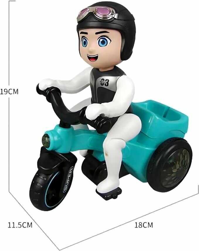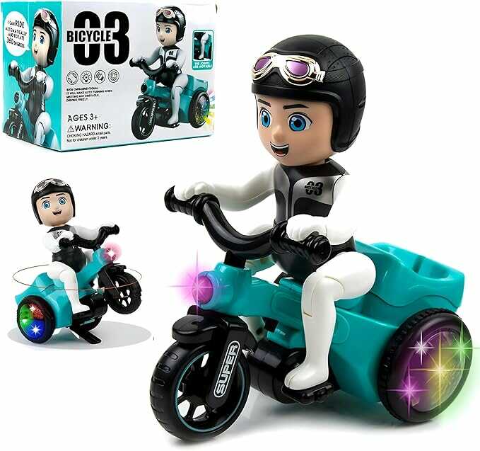 észülj fel egy igazi kaszkadőr show-ra! Ezzel a DIDAI LD-151A kaszkadőr triciklivel gyermeked egy pillanat alatt a figyelem középpontjába kerül. A jármű nemcsak előrehalad, hanem egyetlen mozdulattal 360°-ban forog, miközben látványos fényeffektusokkal és dinamikus zenével kíséri a mutatványt. A tricikli elől ülő figura és a menő dizájn igazi izgalmas játékélményt nyújt, amely garantáltan fejleszti a gyermeked kreativitását és térlátását.