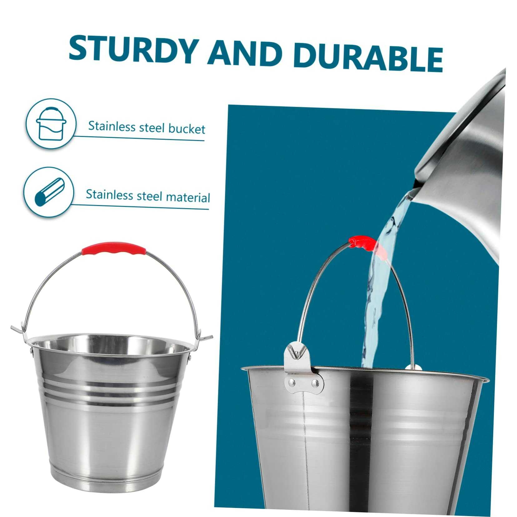 Klasszikus Rozsdamentes Acél Vödör Műanyag Fogantyúval – 5 Liter