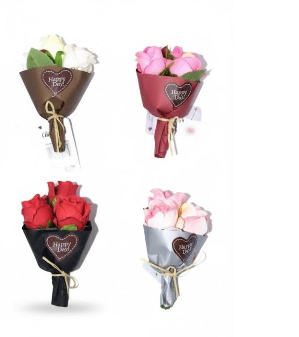Stílusos díszcsomagolás: Minden mini csokor elegáns papírba van tekerve, masnival és egy kedves „Sweet Love” feliratú szívvel díszítve, így azonnal felhasználható.