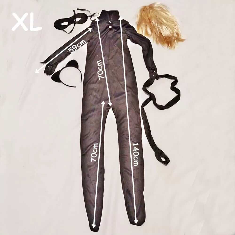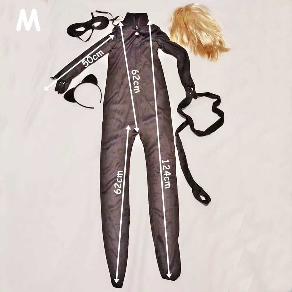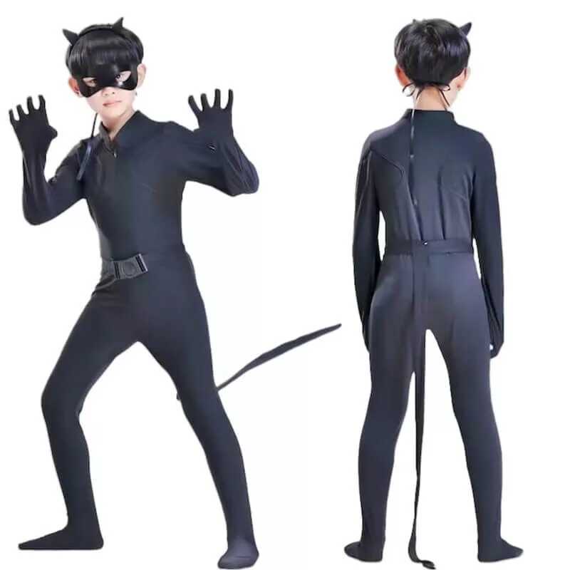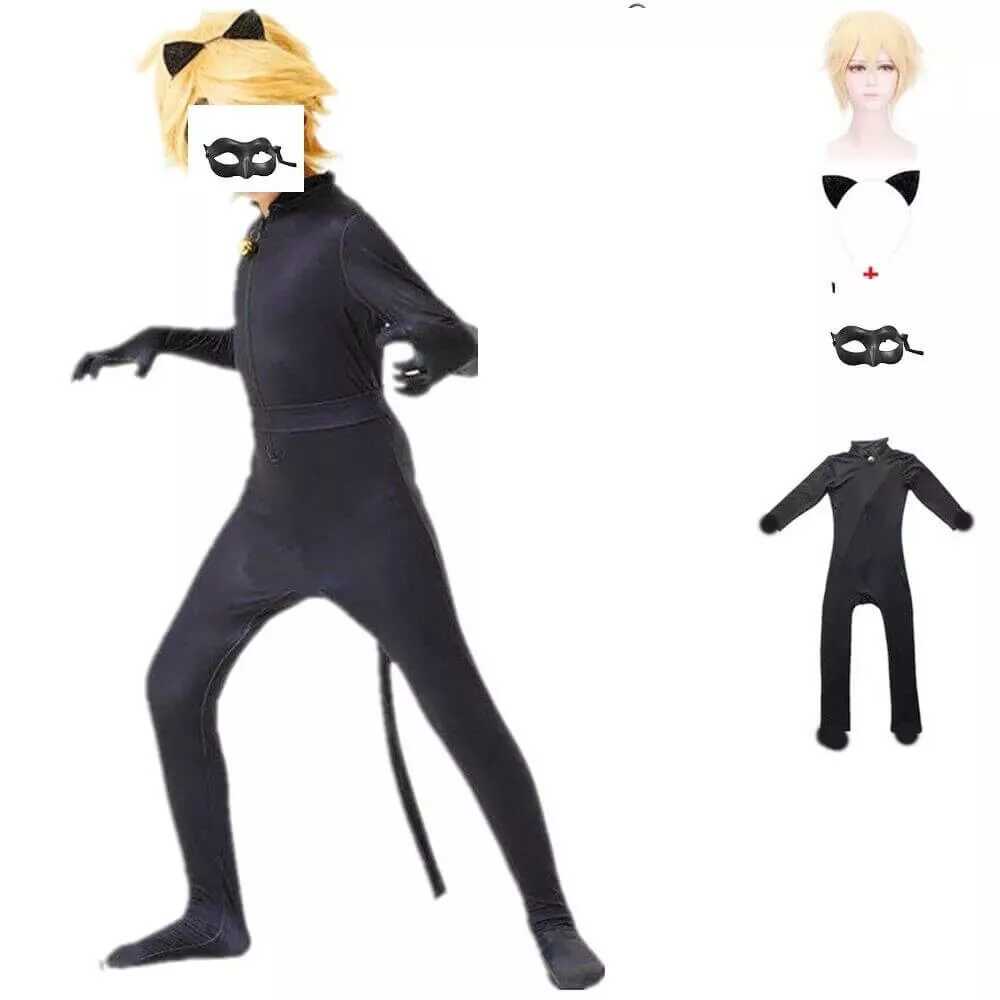 Termékleírás: Miraculous stílusú fekete macska szuperhős prémium jelmez szett parókával