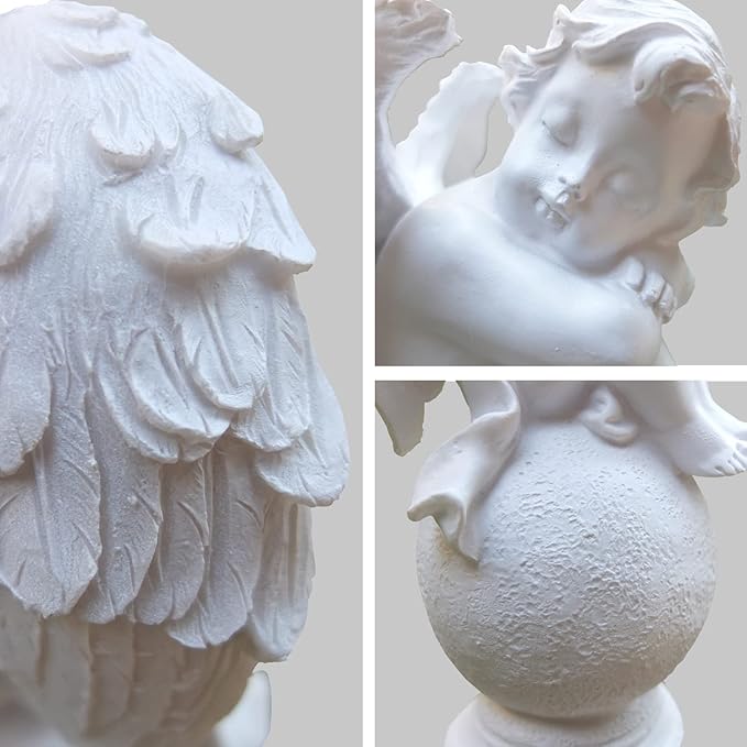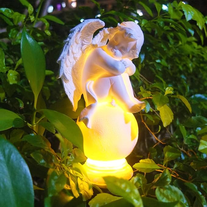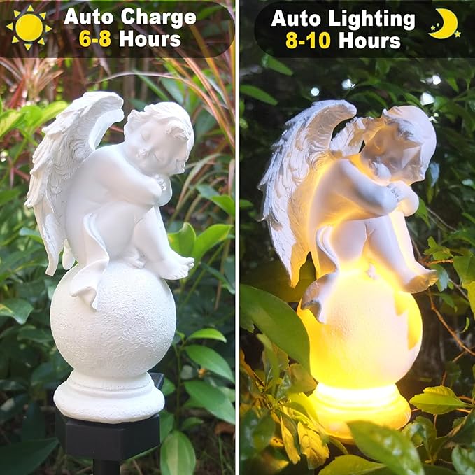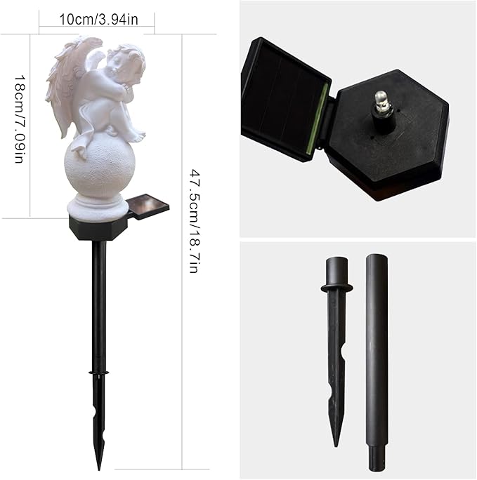 Napelemes Térdelő Angyal | Fehér Gyanta, VízállóBevezetőKeresi a tökéletes kiegészítőt, amellyel nyugalmat, békét és meghittséget vihet kertjébe, udvarába vagy akár egy temetői sírhelyre? Ha Ön az a típusú vásárló, aki a szívhez szóló, méltóságteljes dekorációt keresi, amely automata és időjárásálló is egyben, ne keressen tovább!Ez a Juliahestia napelemes térdelő angyalszobor minőségi, kézzel festett gyantából készült, amely a részletgazdag kidolgozásnak köszönhetően élethű és megkapó látványt nyújt. Mire való? Hogy a beépített napelemek segítségével napközben feltöltődjön, és alkonyatkor automatikusan felvillanjon és meleg fénnyel világítson, ezzel teremtve békés atmoszférát. Miért hasznos ez Önnek? Nincs szükség vezetékekre vagy elemcserére, és az időjárásálló, vízálló kialakításnak köszönhetően a szobor nem fakul és nem deformálódik még napsütésben vagy esőben sem. Ezenkívül használható kedves emlékhelyként is. Csempésszen egy csipetnyi nyugalmat az életébe ezzel az elegáns angyalfigurával!Főbb jellemzőkNapelemes működés és automata bekapcsolás: Beépített napelemek nyelik el a napfény energiáját, és sötétedéskor a LED automatikusan felvillan meleg fénnyel. (Fontos: helyezés előtt a gombot be kell kapcsolni!)Előny: Környezetbarát és energiatakarékos, nem igényel külső áramforrást vagy vezetékeket. Teljesen gondozásmentes, automata világítást biztosít éjszaka.Kiváló minőségű és időjárásálló gyanta anyag: A szobor kézzel festett, prémium gyantából készült, ami vízálló, időjárásálló és napvédő tulajdonságokkal rendelkezik.Előny: Nem fakul, nem deformálódik esőben vagy erős napsütésben sem. Hosszú élettartamú, tartós dekorációt kap, amely hosszú ideig megőrzi szépségét.Könnyű és vezeték nélküli telepítés: A leszuró karó és rúd segítségével pillanatok alatt rögzíthető a puha talajba, áramellátás és vezetékek nélkül.Előny: Nincs szükség szakemberre vagy bonyolult szerelésre. Egyszerűen és gyorsan áthelyezhető a kert különböző pontjaira.Elegáns Fehér Angyal Téma: A térdelő, imádkozó angyal motívum békét és méltóságot sugároz.Előny: Méltóságteljes és szívmelengető dísz lehet az udvaron, teraszon, vagy sírkövekként szolgálhat a temetőkben.Kinek ajánljuk?Azoknak, akik békés és spirituális hangulatot szeretnének teremteni kertjükben, teraszukon vagy udvarukon.Akik egy automata, energiatakarékos napelemes lámpát keresnek, ami nem igényel folyamatos törődést.Akik méltóságteljes emlékhelyet szeretnének kialakítani, mivel a szobor sírkőként is funkcionálhat.Azoknak, akik különleges, kézzel festett ajándékot keresnek, amely sok részletet tartalmaz.SpecifikációkJellemzőÉrtékMárkaJuliahestiaAnyagGyantaSzínFehér AngyalTémaFehér AngyalVilágítás típusaLEDMűködésNapenergiásTermék méretei (H x Sz x M)10,01 cm x 8,99 cm x 42,49 cm (3,94 x 3,54 x 16,73 hüvelyk)VízállóságVízálló, Időjárásálló, Napvéd