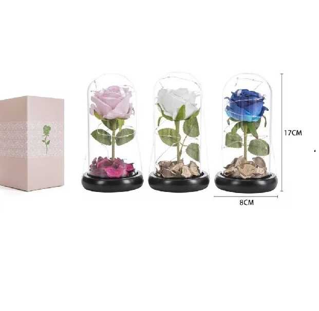 Örök rózsa üvegbúrában – LED világítás, 17 cm, több színben