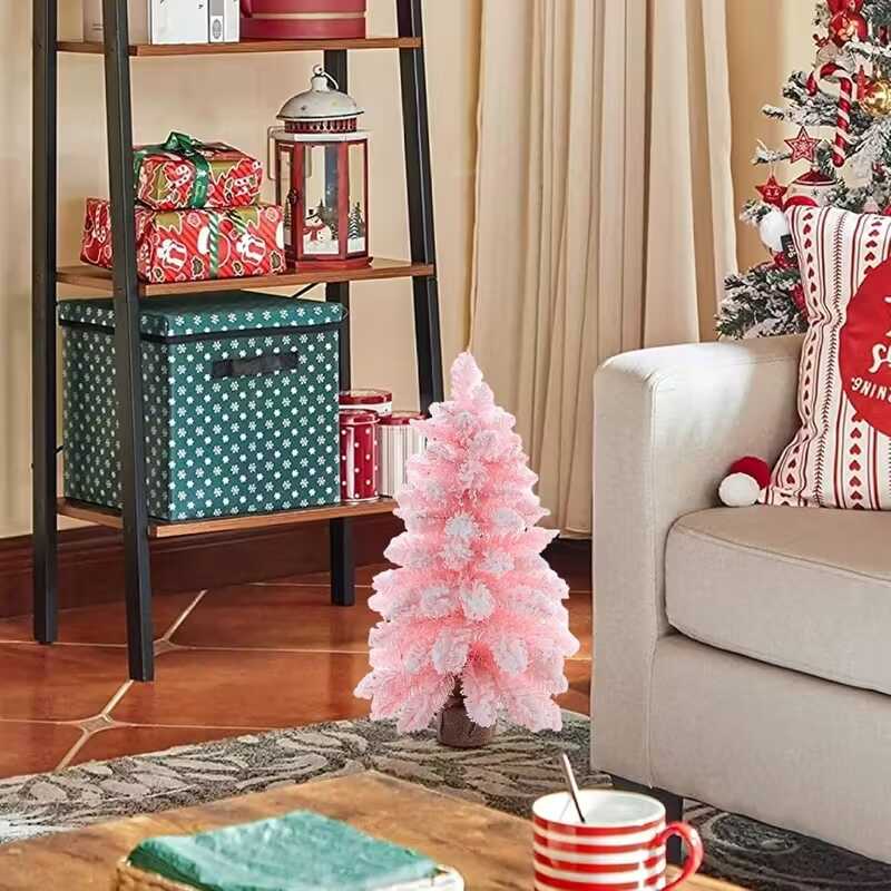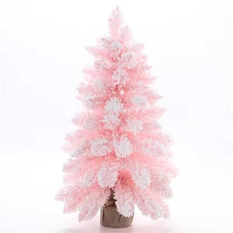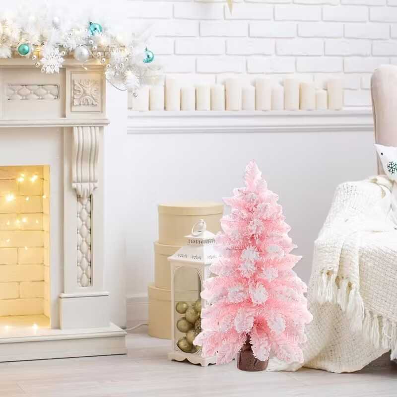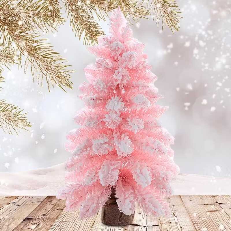 1x Rózsaszín Havas Varázs – Mini Karácsonyfa Asztaldísz (30 cm) a zsákvászon talpával együtt