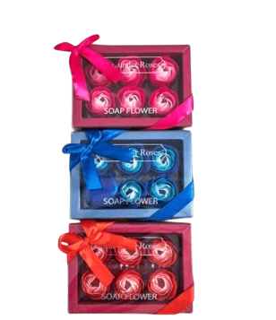 Szappanrózsa díszdobozban – 6 db-os szett, élethű virágdekoráció