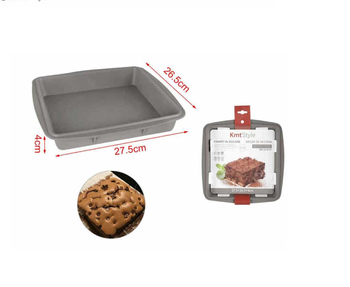 Készítsen tökéletes brownie-kat, süteményeket vagy akár sülteket ebben a prémium minőségű, szögletes szilikon sütőformában. A 27,5 x 26,5 cm-es méret ideális közepes adagok elkészítéséhez, a 4 cm-es peremmagasság pedig stabil tartást biztosít a tésztáknak és a szaftosabb ételeknek egyaránt. A sötétszürke, modern kivitel nemcsak esztétikus, hanem professzionális hőelosztást is garantál a sütés során.