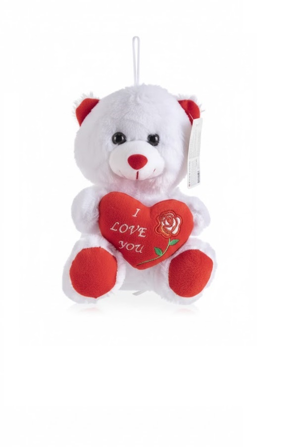 Valentin-napi Felakasztható Plüss Maci Szívvel, 21 cm