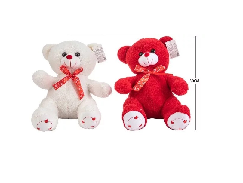 Valentin-napi Plüss Maci, 30 cm, Szíves Masnival és Talpakkal