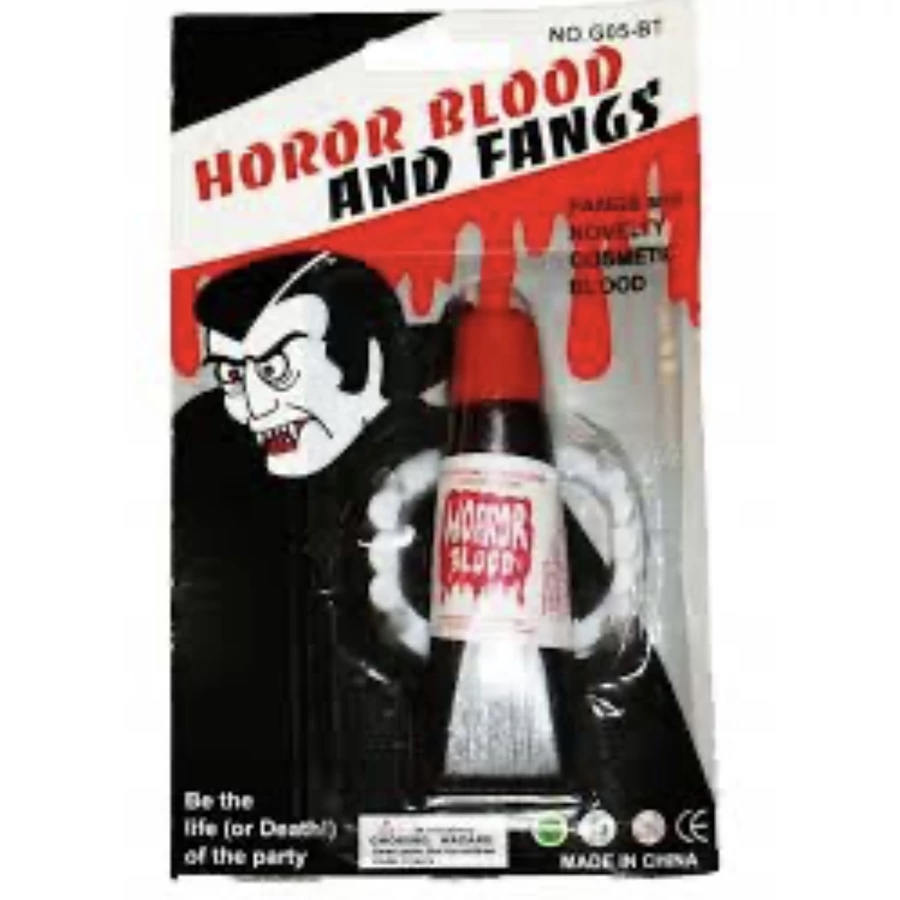 Válj igazi vámpírrá ezzel a komplett vámpír jelmez szettel! A csomag mindent tartalmaz, ami egy félelmetes, vérszívó megjelenéshez szükséges: egy pár élethű, fehér vámpír fogat és egy tubus művért.