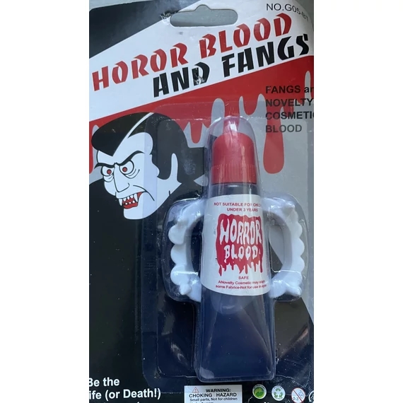 A vámpír fogak könnyen felhelyezhetőek, így gyorsan és egyszerűen teheted ijesztővé a jelmezedet. A művér pedig ideális a száj körüli “”vérfoltok”” elkészítéséhez, a még hitelesebb, frászt hozó hatásért.