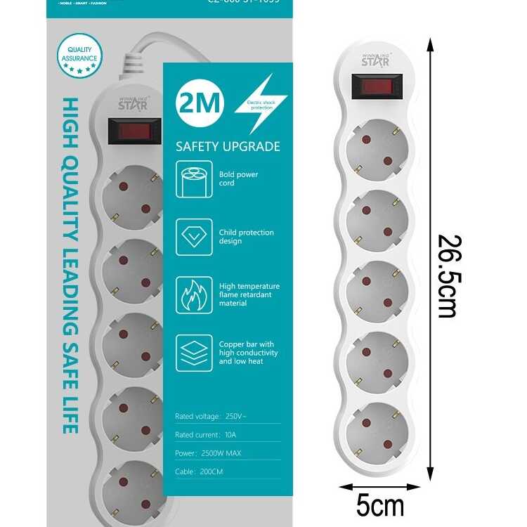 Mindig ellenőrizze, hogy az elosztó terhelése (azaz a csatlakoztatott eszközök együttes teljesítményfelvétele) ne haladja meg a megadott 2500W-ot.