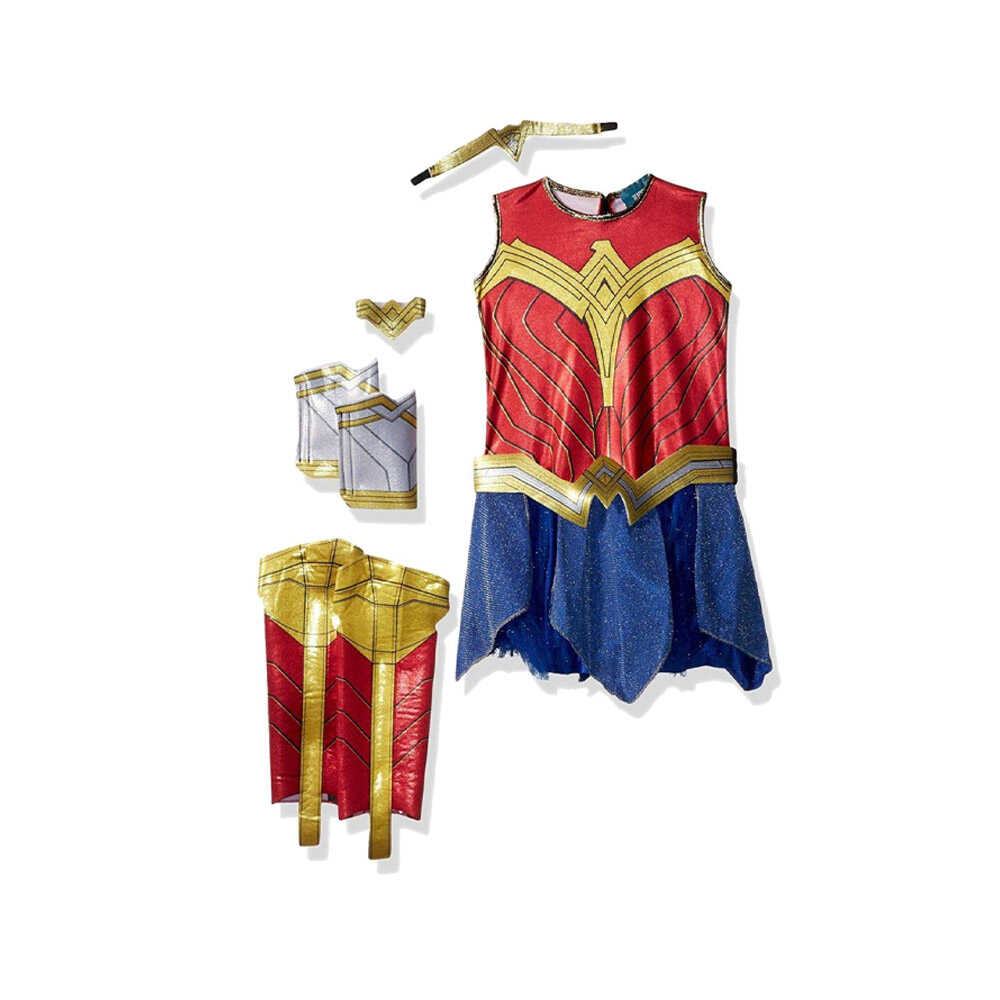 Ebben a vagány Wonder Woman jelmezben minden kislány igazi szuperhőssé válhat! A jelmez tartalmazza Wonder Woman jellegzetes piros-kék ruháját, a csillogó arany fejpántot és a kiegészítőket, hogy a kislányok pont úgy nézzenek ki, mint kedvenc amazonjuk. A jelmezben a kicsik igazi harcosokként védhetik meg a világot a gonosztól, miközben szuper erejüket és bátorságukat használják. Tökéletes választás farsangi bulikba, születésnapokra, Halloweenre vagy akár egy átlagos délutáni játékra is, hogy a képzelet szárnyalhasson.