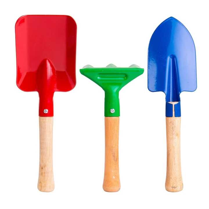 - 3 darabos készlet: Tartalmaz ásót, gereblyét és lapátot.