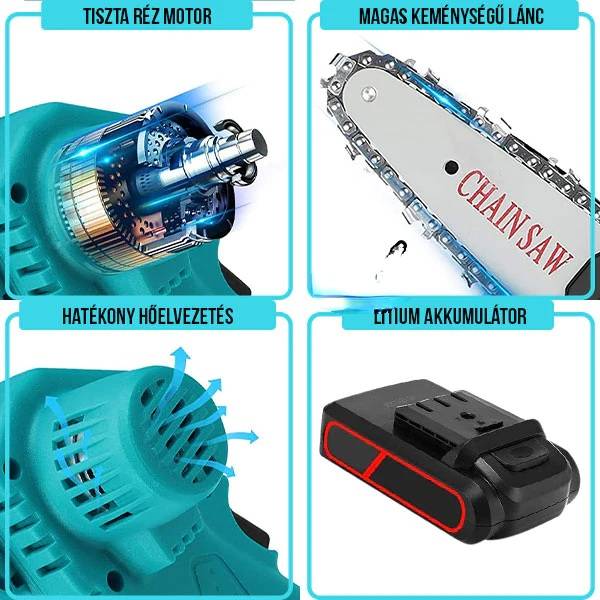 Az akkumulátoros kézi fűrész minden ember számára megfelelő, minőségi lánc és rendkívül erős motor nevezetesen biztosítják a különféle ágak pontos, hatékony és gyors eltávolítását, kétségtelenül a kedvenc kiegészítője lesz minden kertészeti munkában.