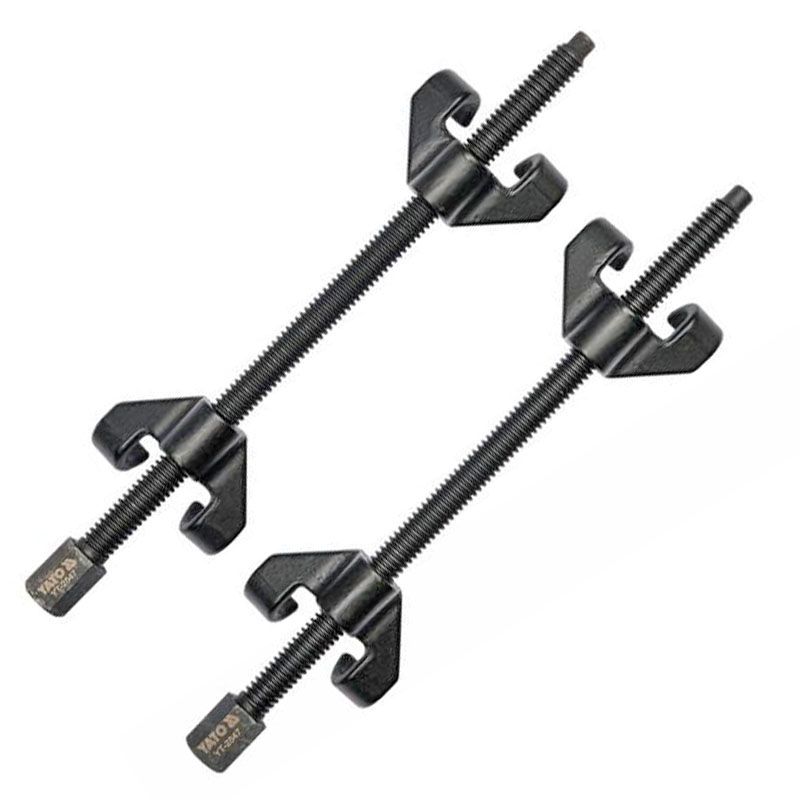 Kézzel állítható mechanikus prés autórugók és lengéscsillapítók cseréjéhez, összeszereléséhez. Két darabot tartalmaz a készlet.