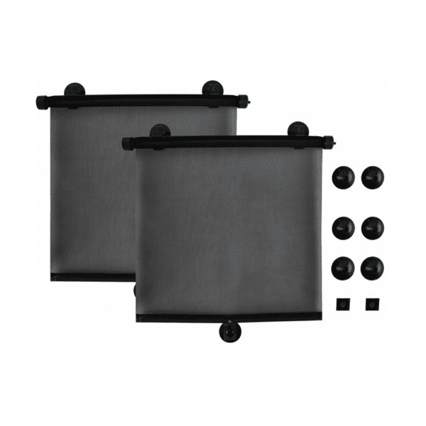 A roló hálós anyagból készült, mely védi az autó utasterét a napsugarak ellen. Három tapadókorong segítségével stabilan rögzíthető, amely így elmozdulás nélkül a helyén marad. Egy csomagban 2 darab napellenző van.