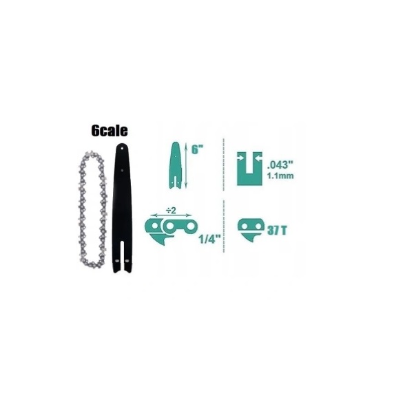 Lánc hossza: 6″, Rúd hossza: 6″, Láncemelkedés: ¼” , Vezető horony vastagsága: 1,3 mm Kompatibilitás: bármilyen 4 és 6 hüvelykes akkus mini fűrészhez használható
