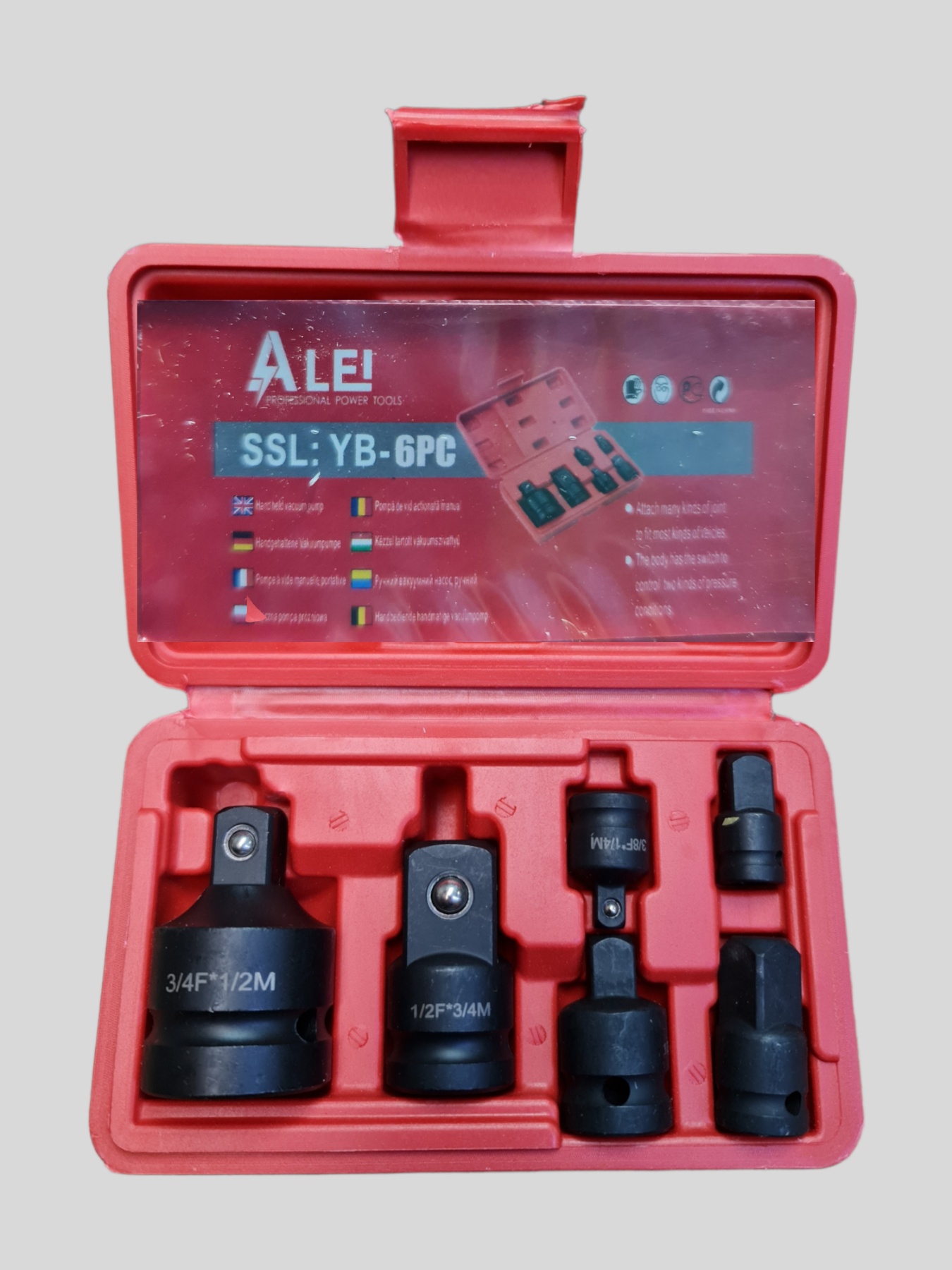 - 6 különböző adapter: A készlet 3/4″-1/2″, 1/2″-3/4″, 1/2″-3/8″, 3/8″-1/2″, 3/8″-1/4″ és 1/4″-3/8″ méretű adaptereket tartalmaz, így széles méretválasztékot biztosít a dugókulcsok méreteinek illesztéséhez.