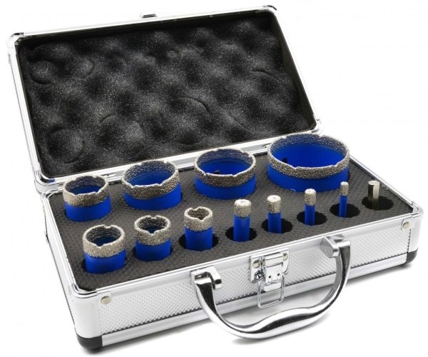 Ez a 11 darabos gyémánt korona készlet a burkolók és kőfaragók nélkülözhetetlen eszköze. A gyémánt bevonatú koronák rendkívül gyors és hatékony fúrást tesznek lehetővé a legkeményebb anyagokban is, mint például a csempe, gránit, márvány, porcelán, vagy akár a természetes kő.