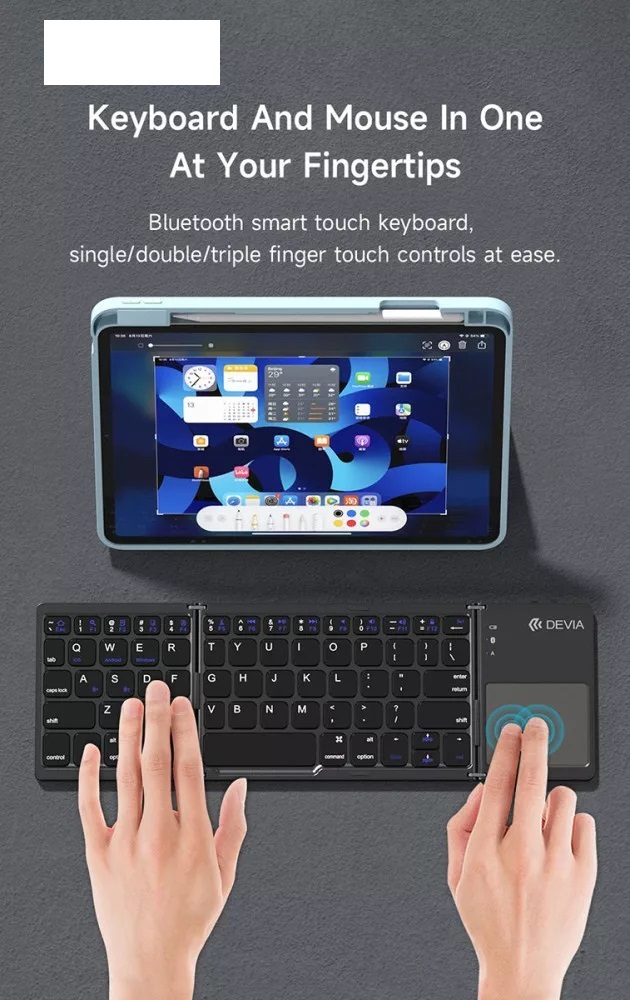 Ez a kompakt és könnyű, összecsukható Bluetooth billentyűzet ideális társ utazáshoz, munkához vagy tanuláshoz. A beépített touchpad lehetővé teszi az egér nélküli navigációt, így még helytakarékosabb megoldást kínál.