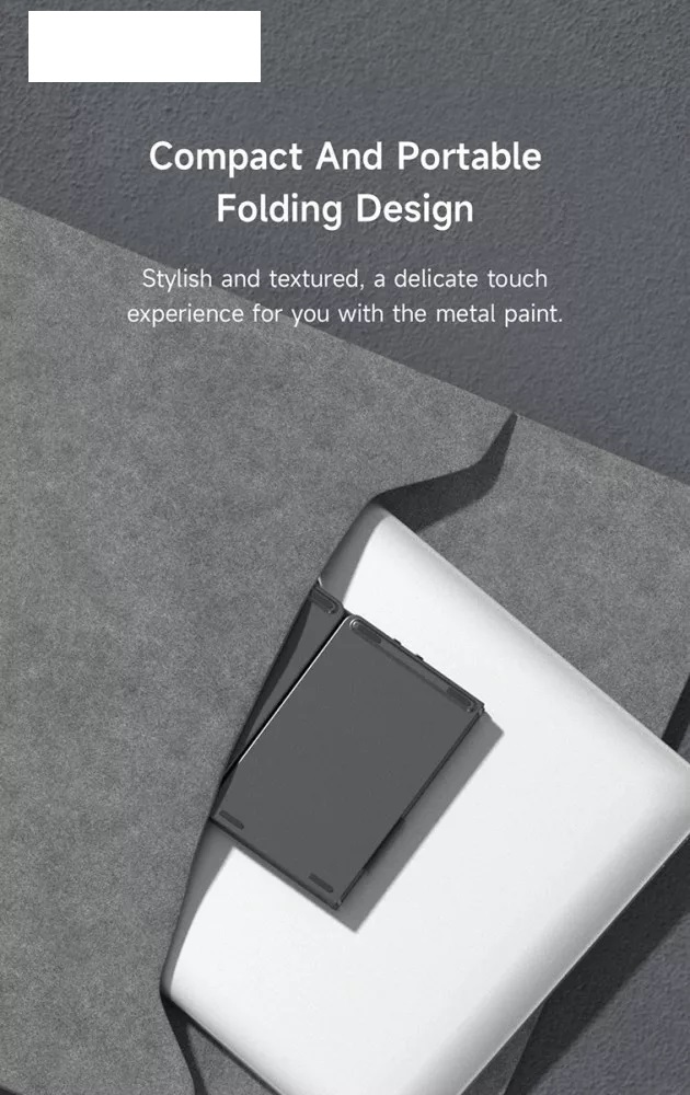 - Összecsukható kialakítás: Kompakt méretűre csukható össze, így könnyen elfér táskában vagy hátizsákban.