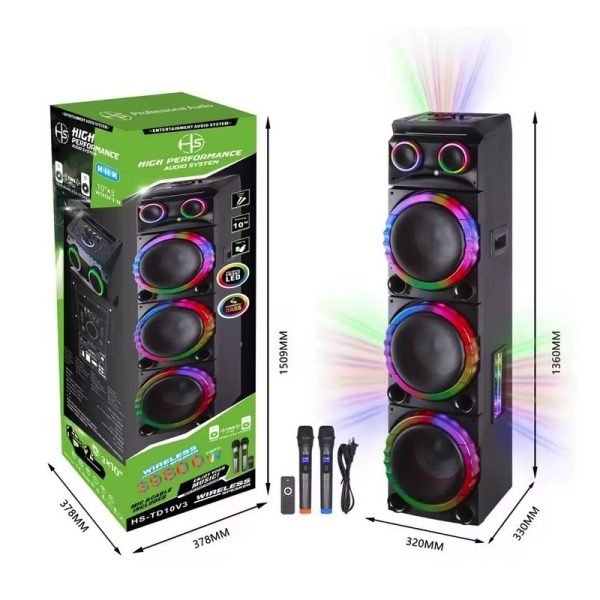 A HS-TD10V3 vezeték nélküli hangszóróval a buli mindig veled tarthat! A három darab 10″-es mélynyomó és az 1,5″-es magassugárzó kombinációja lenyűgöző hangzást biztosít, amely betölti a teret, legyen szó házimoziról, szabadtéri partiról vagy akár egy színpadi előadásról. A színes LED fények pedig igazán különleges hangulatot teremtenek.