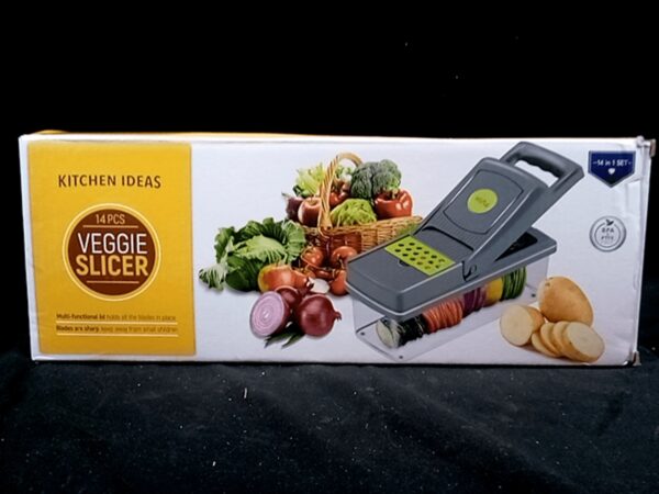 A Konyhai szeletelő szett 14DB-os egy praktikus és sokoldalú konyhai eszközkészlet, amely ideális választás lehet a konyhai munkafolyamatokhoz. A szettben számos leválasztható kés opció található, amelyek különböző feladatokhoz használhatók, beleértve a reszelést, szeletelést és kockázást is. Az alábbiakban röviden összefoglalom a különböző késopciókat:
