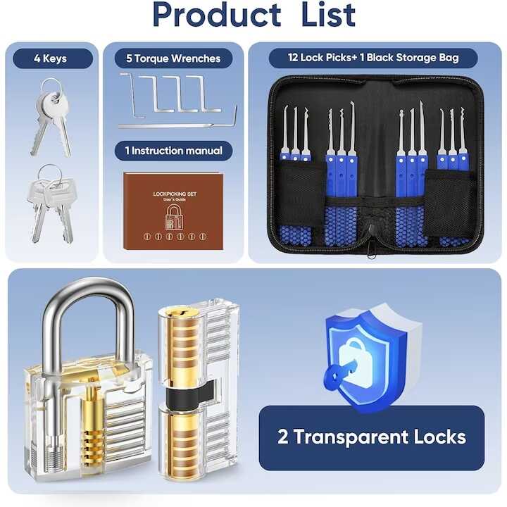 - Sokoldalú: A 17 darabos készlettel bármilyen zárat kezelhetsz.