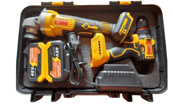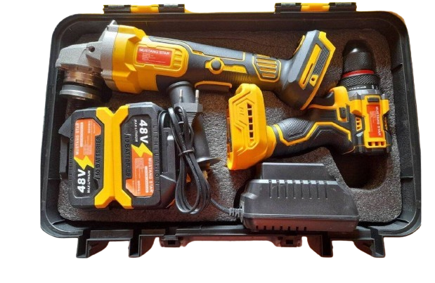 A Mustang Star Akkumulátoros Szerszámkészlet a tökéletes választás minden barkácsoláshoz és szakmai munkához. Ezzel a praktikus készlettel könnyedén megbirkózhatsz a fúrási, csavarozási, vágási és csiszolási feladatokkal. A készlet tartalmaz egy fúró-csavarozót és egy sarokcsiszolót, melyeket egyetlen, nagy teljesítményű 48V-os lítium akkumulátor működtet, így biztosítva a hosszú üzemidőt és a hatékony munkavégzést.