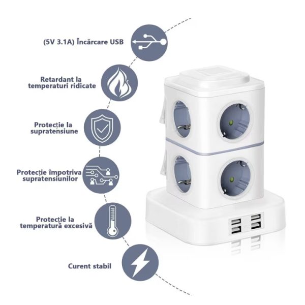 Ez az elosztó praktikus és biztonságos megoldást kínál az elektronikai eszközeid csatlakoztatására és töltésére.