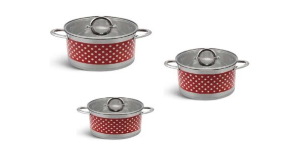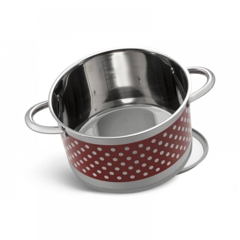 - Anyag és kivitelezés: Az edénykészlet rozsdamentes acélból készült, ami rendkívül tartós és ellenálló anyag. Ezenkívül a pöttyös mintázat stílust ad az edényeknek és megakadályozza az ételek tapadását az edény falához.